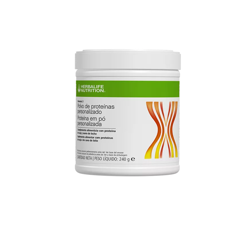 Fórmula 3 Polvo de Proteínas Personalizado está elaborado con una mezcla de proteína de suero y proteína de soja de alta calidad, que contribuye al mantenimiento y crecimiento de la masa muscular.
